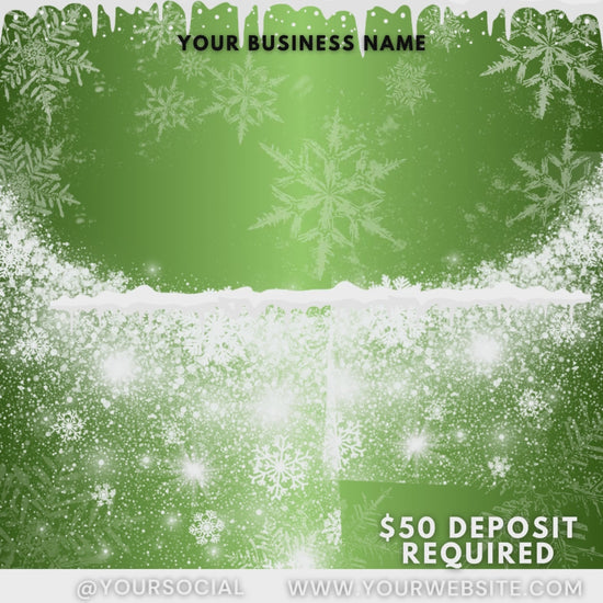 Get fully booked this holiday season with this festive Christmas Booking Flyer Template for December, editable in Canva. Perfect for beauty professionals, lash techs, nail techs, hairstylists, MUAs, and small businesses offering December specials. Easily customize the colors, text, and branding to promote holiday deals, openings, and last-minute appointments. Designed for social media or print, this eye-catching Christmas flyer helps you attract clients and stand out all month long.