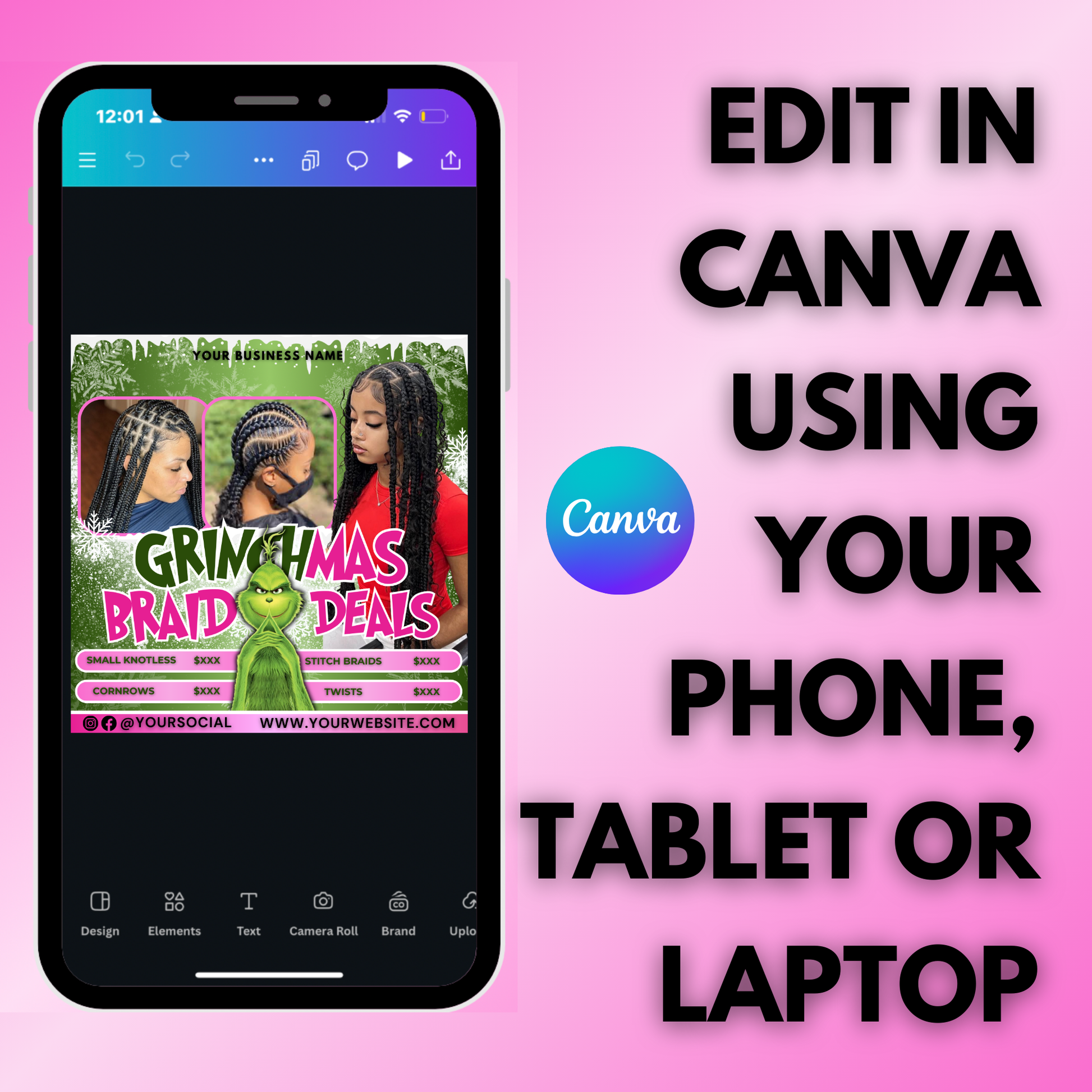 Christmas Braid Flyer, December Braid Booking Flyer Template | Canva Template