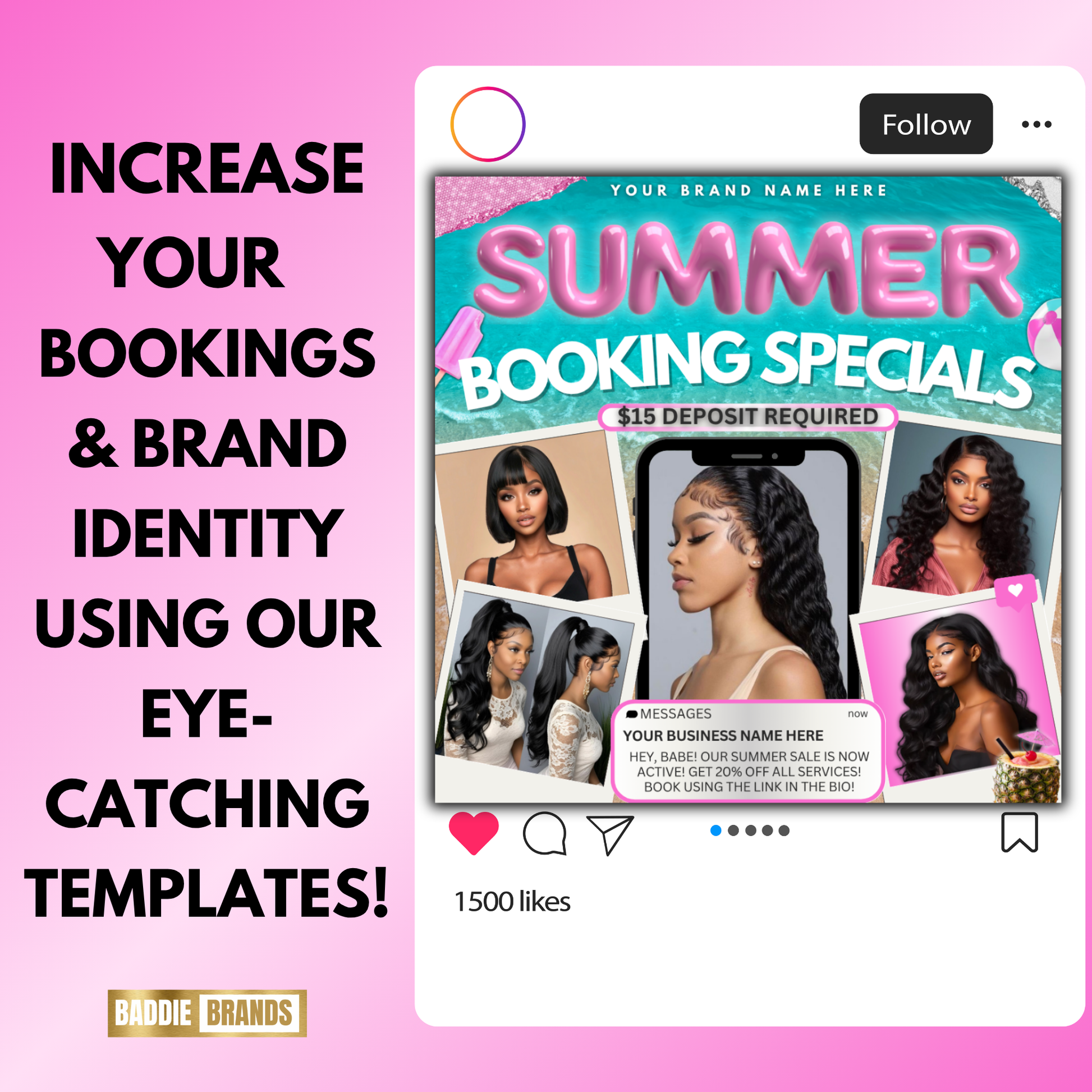 This DIY template is perfect for small businesses such as clothing boutiques, lash bars, nail salons, beauty salons, hair studios, and spa businesses. The template is easy to customize and will elevate your social media presence. With the super easy online graphic design tool Canva, you'll be able to create eye-catching designs for your business in just minutes in your browser without installing a software. By using this well crafted and high-value Canva template, you'll save time and money while investing in your business.