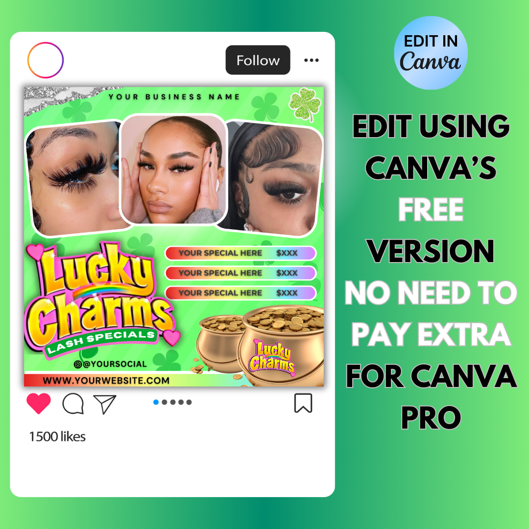 Lash Flyer, March Booking Flyer | St. Patricks Day Lash Booking Flyer | Edit in Canva