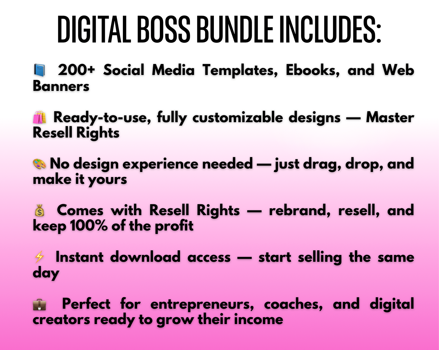 All the hard work is done for you — all that’s left is to brand it your way and start cashing in. Your digital empire starts here, boss. ✨